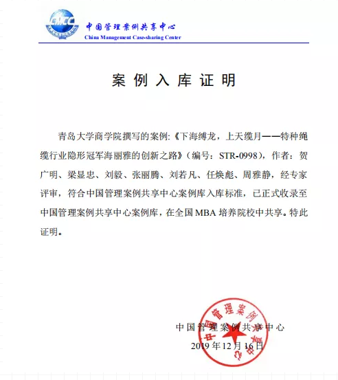 青島海麗雅集團(tuán)堅(jiān)持走“專、精、特、新”的發(fā)展戰(zhàn)略,通過國際領(lǐng)先的產(chǎn)品開發(fā)水平和技術(shù)創(chuàng)新能力,堅(jiān)持產(chǎn)品品質(zhì)戰(zhàn)略,不斷提高自身核心競爭力,成為代表中國應(yīng)急安全保障類產(chǎn)品走向世界的領(lǐng)軍企業(yè)。2018年,海麗雅作為中國百年企業(yè)創(chuàng)新發(fā)展的典型學(xué)術(shù)研究案例,入選浙江大學(xué)“隱形冠軍”國際研討會(huì)。2019年,該案例入選“中國管理案例共享中心案例庫”,在全國高校MBA教育課程中共享。