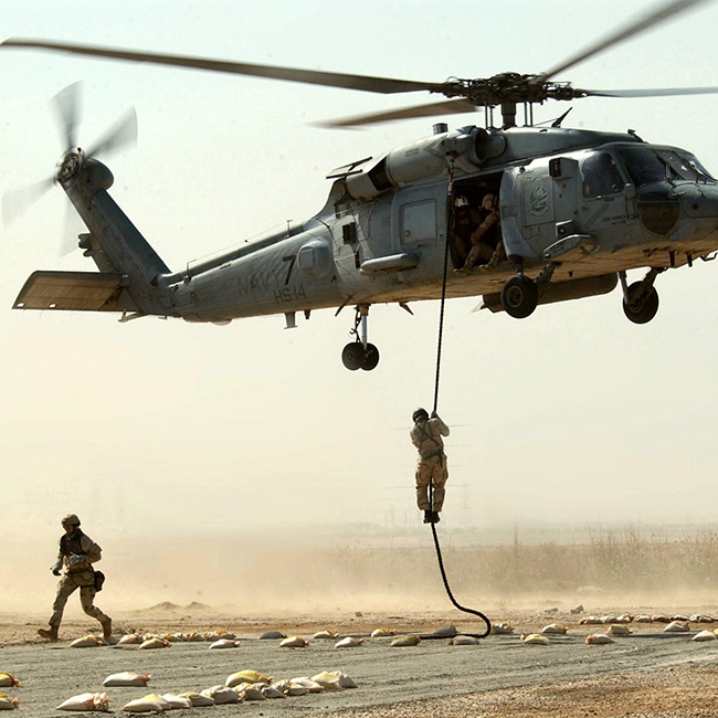 飛機(jī)繩-飛機(jī)上逃離繩是專門為從直升機(jī)上快速下降而開發(fā)的,無需借助下降器,只需手套的摩擦。它柔軟而靈活的結(jié)構(gòu)促進(jìn)了舒適而精確的下降。