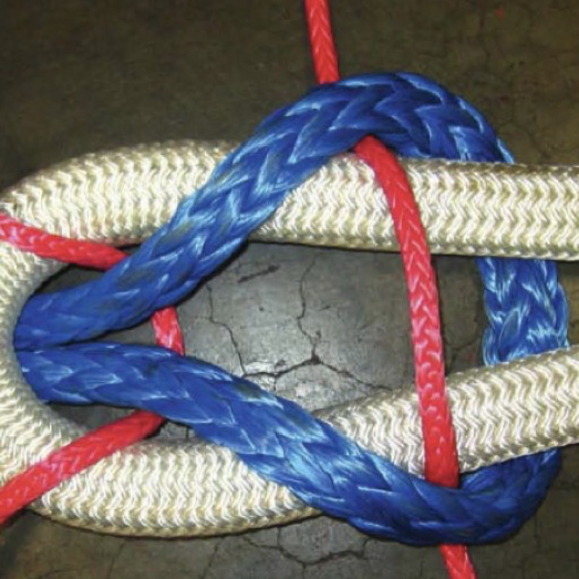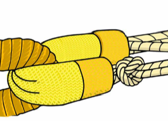 纜繩尾可以使用雙合結(jié)直接連接到高模量合成纖維纜繩上。雙合結(jié)是一種不使用連接裝置而將兩根纖維繩連接起來的方法。使用后的雙合結(jié)可能會變得非常緊,建議在雙合結(jié)中加入一段繩頭,有助于將纜繩尾和主纜分開,以便進(jìn)行更換或檢查。大多數(shù)繩頭是由直徑較小的傳統(tǒng)纖維繩做的。